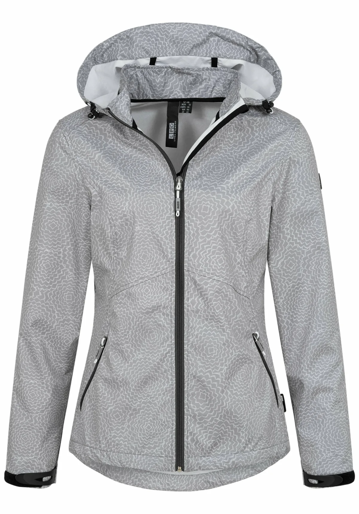 Design: Ritssluiting, Afneembare capuchon, Ritszakken aan de zijkant; Voering: Licht gevoerd; Capuchon: Met capuchon; Type jas: Softshell jas; Extra's: All-over patroon, Label patch/label flag, Gladde stof; Details: Waterafstotende rits; Pasvorm: Normale pasvorm