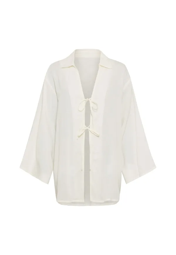 Design: Rechte zoom, Om te knopen/binden; Type sluiting: Snoersluiting; Materiaal: Viscose; Motief: Effen; Extra's: Op staal naden; Pasvorm: Losse pasvorm; Armlengte: Lange mouw; Lengte: Normale lengte