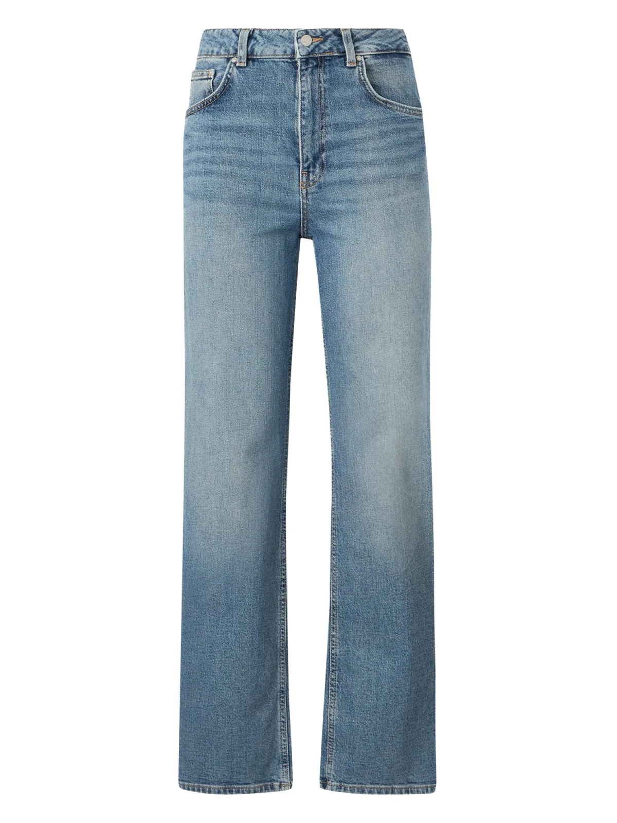 Design: Gevoerde zoom/rand, Ritssluiting, 5-pocket-style; Type sluiting: Ritssluiting; Materiaal: Denim; Motief: Effen; Details: Patches; Extra's: Studs, Contrasterende naden, Label patch/label flag; Wassing: Blauw denim; Lengte: Lang/maxi; Pasvorm: Wide leg; Taillehoogte: High waist