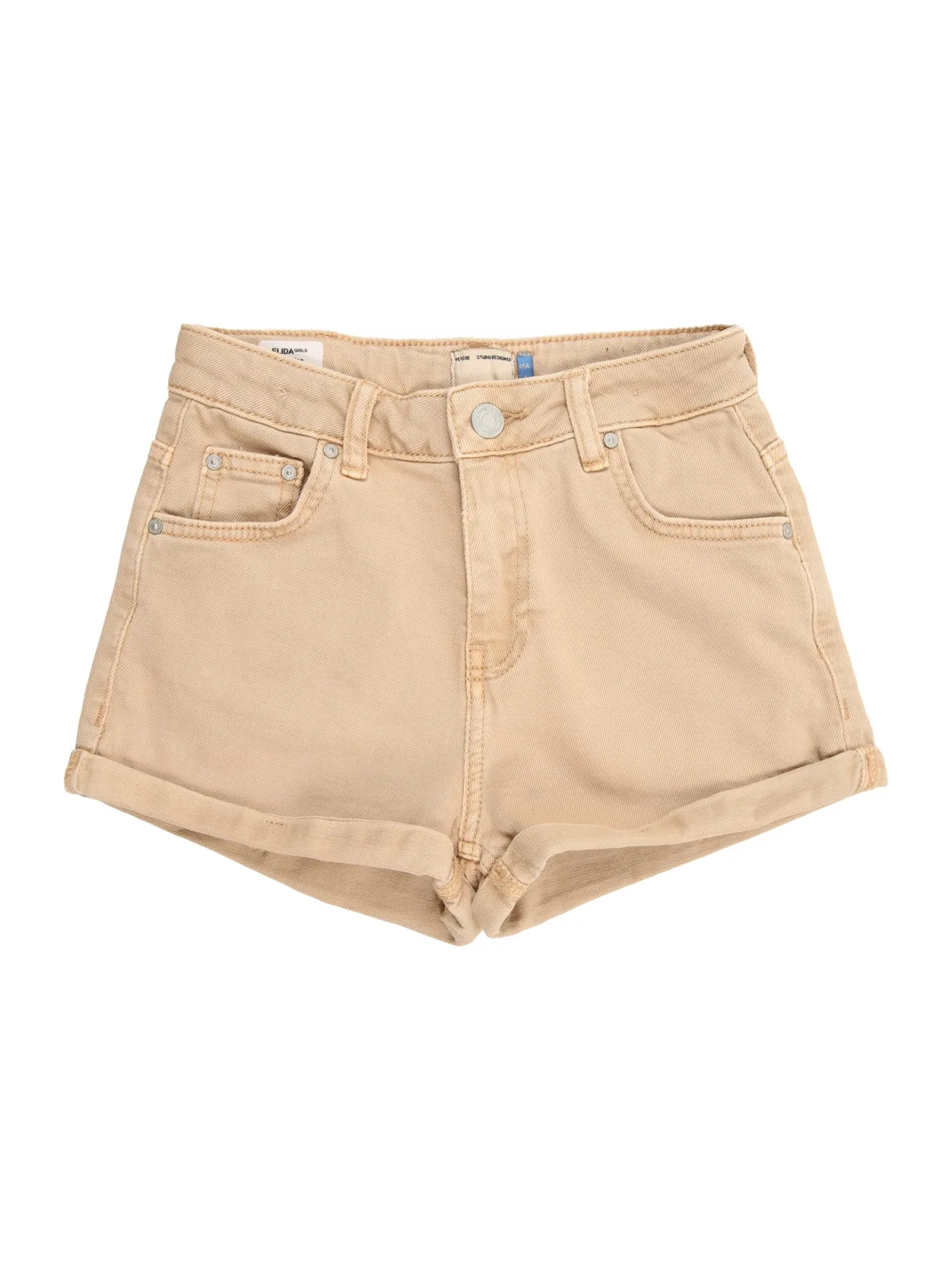 Design: Ritssluiting, 5-pocket-style; Type sluiting: Ritssluiting; Materiaal: Denim; Motief: Effen; Extra's: Studs, Vaste grip, Riemlussen; Wassing: Colored denim; Lengte: Kort/mini; Pasvorm: Normale pasvorm; Pasvorm: Regular