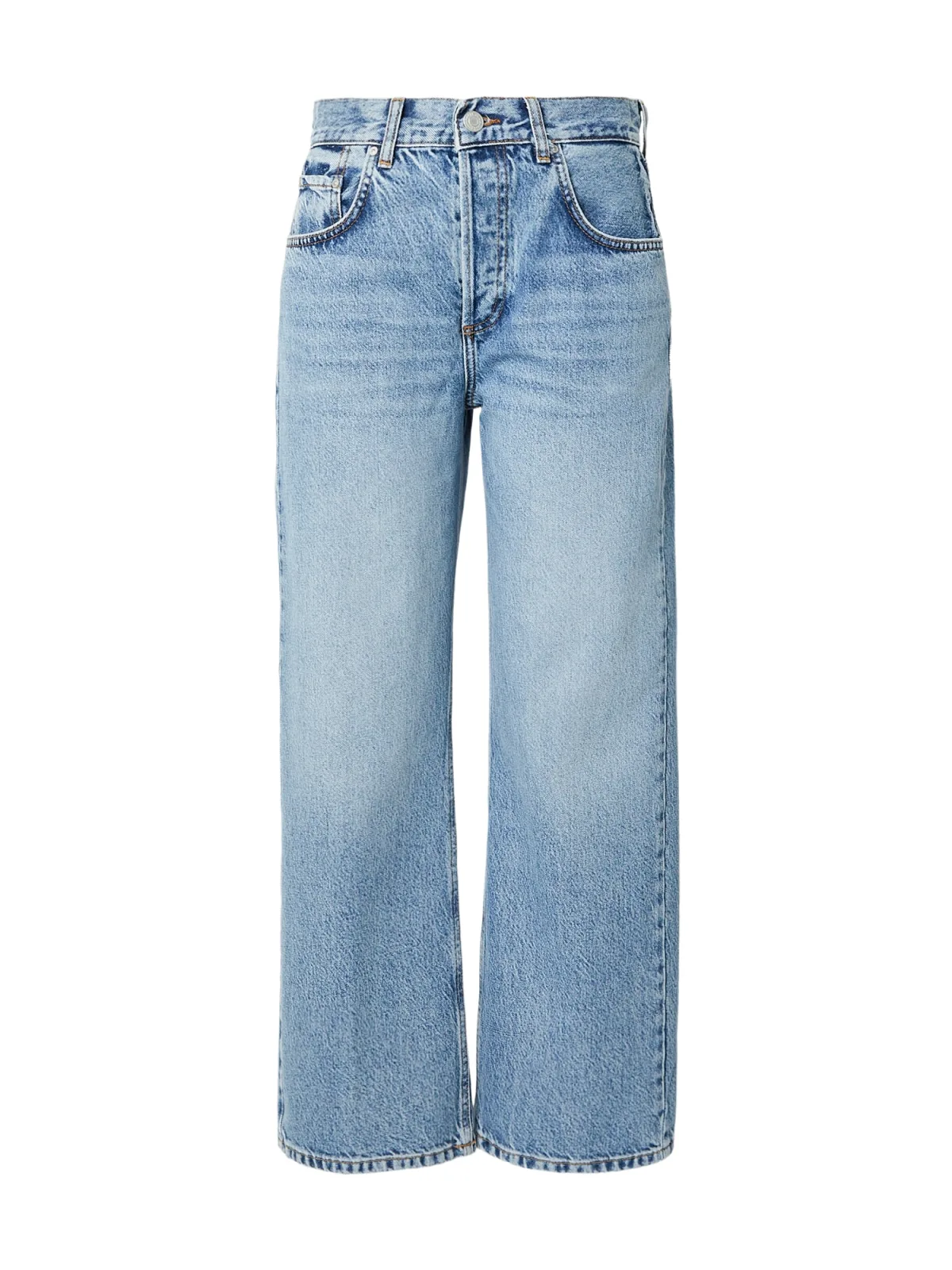 Design: Gevoerde zoom/rand, 5-pocket-style; Type sluiting: Ritssluiting; Materiaal: Denim; Motief: Effen; Extra's: Studs, Vaste grip, Riemlussen; Wassing: Light washed; Lengte: Lang/maxi; Pasvorm: Loosefit; Taillehoogte: Mid waist