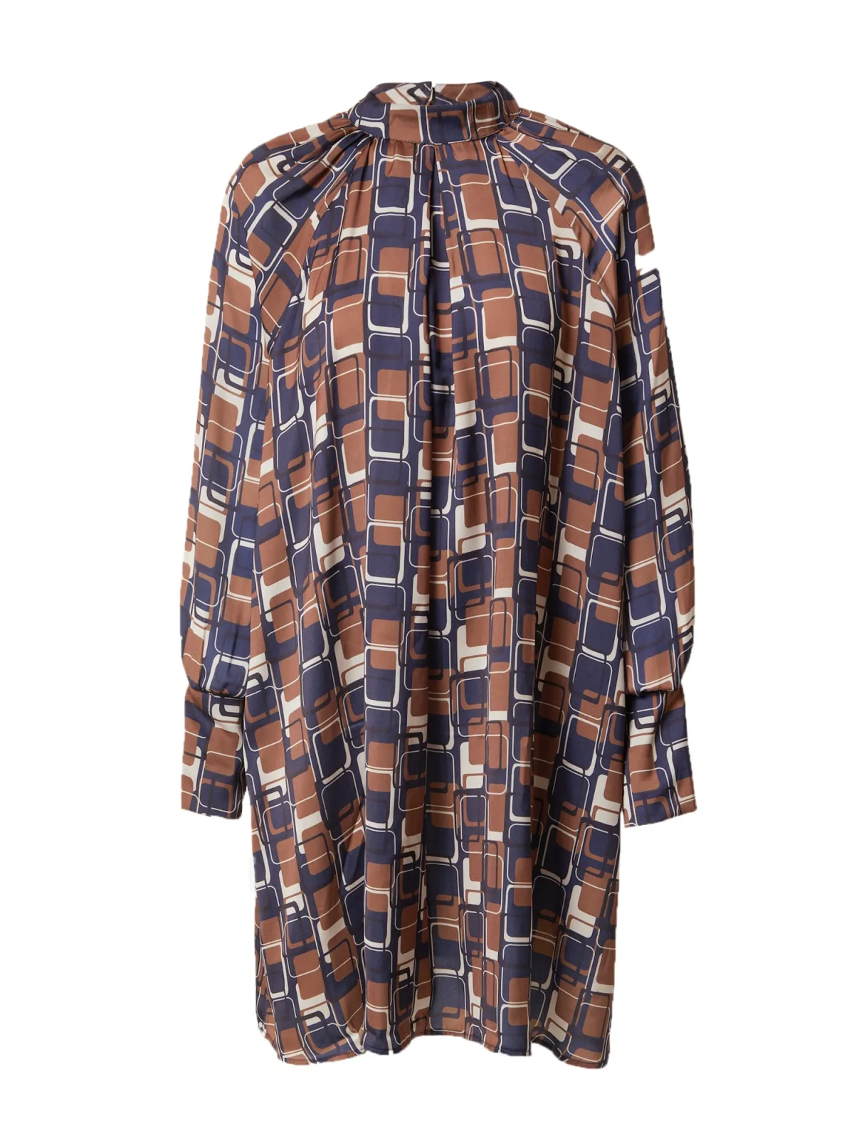 Design: Gevoerde zoom/rand, Rechte manchetten, Rechte zoom, Keyholesluiting, Raglanmouwen, Mouwen met knopen; Type sluiting: Knoopsluiting; Halstype: Opstaande kraag; Details: Plooien; Extra's: All-over patroon, Op staal naden, Gladde stof; Lengte: Knielengte; Pasvorm: Losse pasvorm; Armlengte: Lange mouw