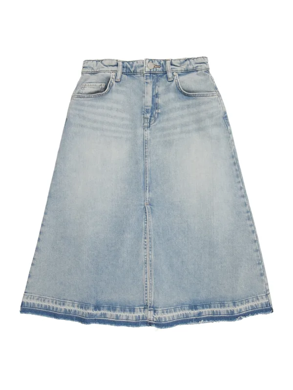 Design: Gefranjerde zoom, Ritssluiting, 5-pocket-style; Type sluiting: Ritssluiting; Materiaal: Denim; Motief: Effen; Rokvorm: A-lijn rok; Details: Franjes; Extra's: Studs, Contrasterende naden, Gewassen effect, Riemlussen; Lengte: Knielengte