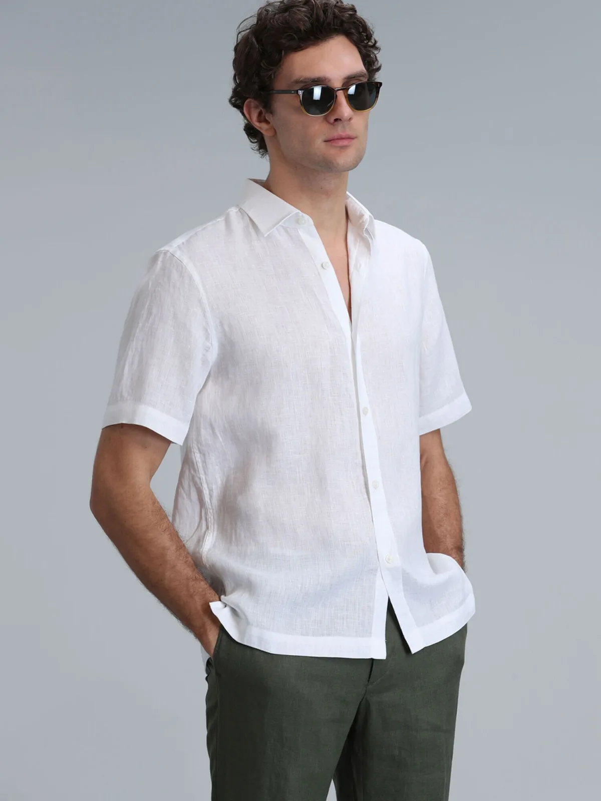 Design: Gevoerde zoom/rand, Knop placket; Type sluiting: Knoopsluiting; Materiaal: Linnen; Motief: Effen; Kraag: Kentkraag; Extra's: Op staal naden, Huidvriendelijk materiaal; Pasvorm: Comfort fit; Armlengte: Kwartmouw