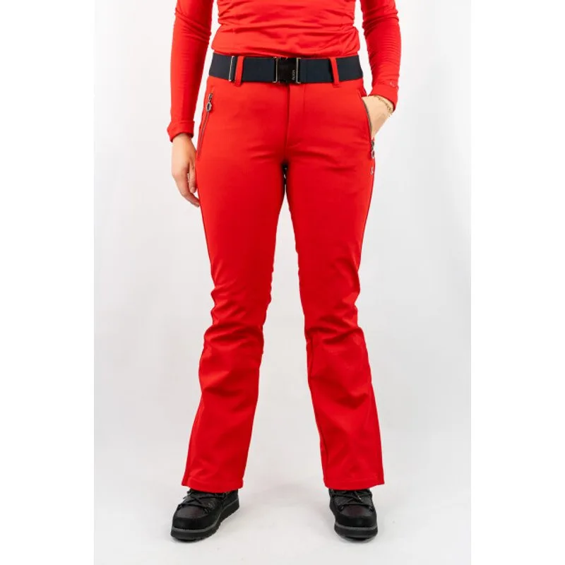 Luhta Joentaus Dames Softshell Ski Broek Softshell broeken zijn helemaal hot! En dat is niet voor niks deze broeken zijn super comfortabel, sluiten mooi aan en je hebt alle bewegingsvrijheid die je nodig hebt wanneer je van de piste gaat. De broek is winddicht en waterafstotend. De broek heeft een elastische riem waarmee je de broek kan verstellen naar de perfecte pasvorm. Luhta Joentaus Dames Sofshell Skibroek De broek heeft twee zijzakken met ritssluiting waar je kleine eigendommen in kan stoppen. De skibroek heeft zijritsen waarmee je meer ruimte krijgt en de broek gemakkelijk aan en uit kan trekken. De broek is voorzien van sneeuwvangers bij de pijpen. Maatinformatie Ons model is 1,72m en draagt broekmaat 40. Van jassen en skipulli’s draag ons model maat 38. Plus en Minpunten: Pluspunten: + Slank model + Softshell + Waterafstotend