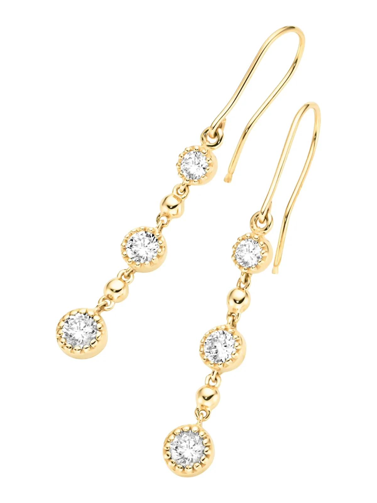 Type oorbel: Oorhangers; Type sluiting: Haakjes; Materiaal: Goud; Extra's: Glanzend, Met zirkonias; Aantal per set: 2-delig