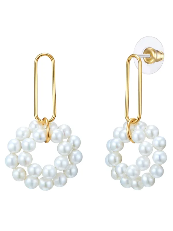 Lulu & Jane Oorbellen goudgeel / parelwit