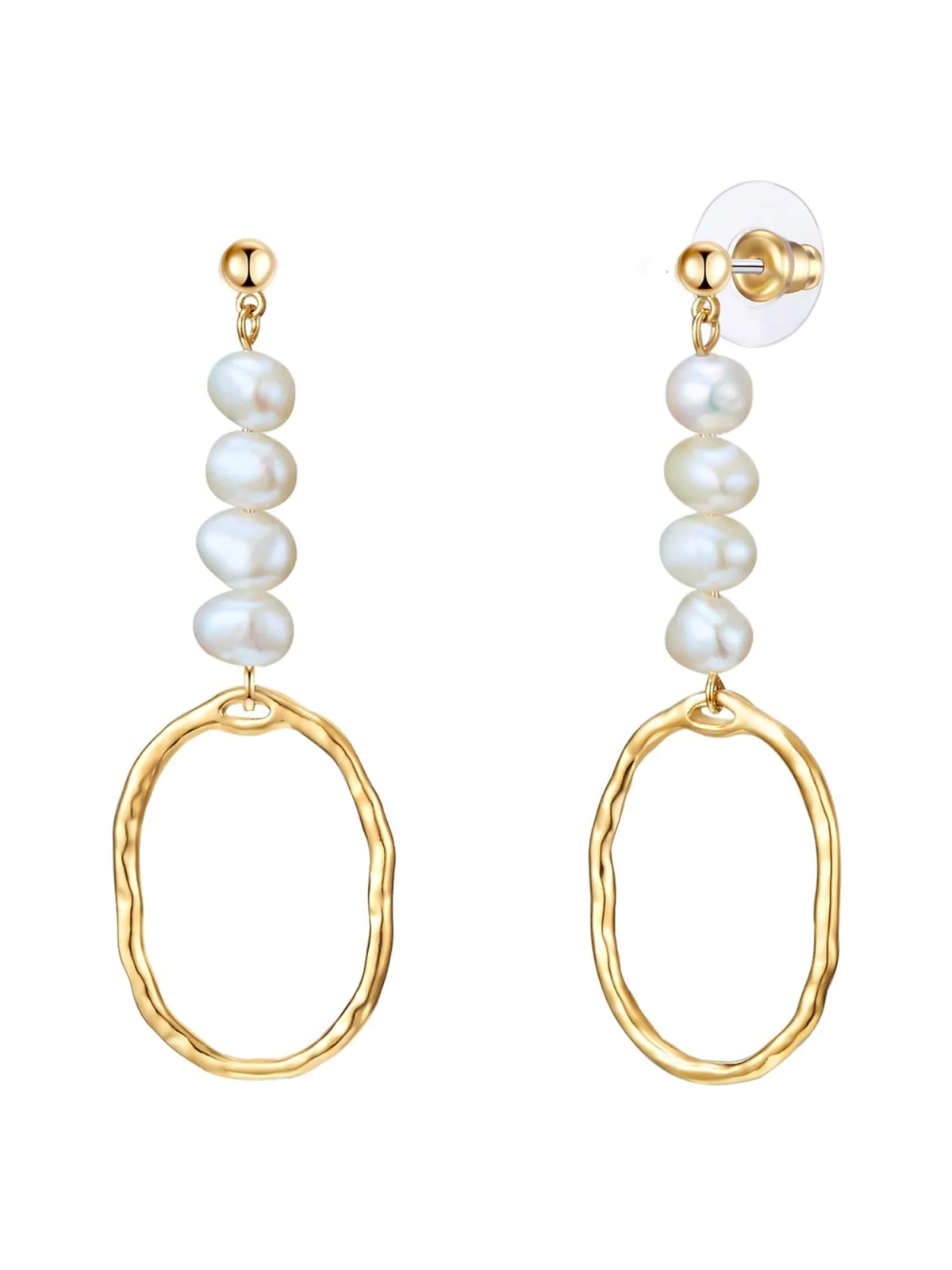 Lulu & Jane Oorbellen goudgeel / parelwit