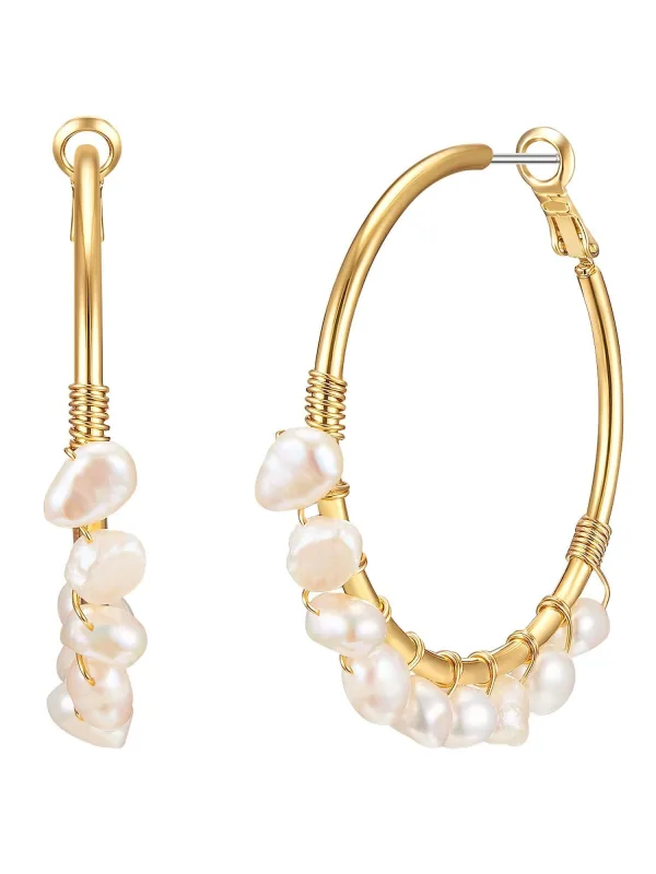 Specificaties: Lulu & Jane Oorbellen goudgeel / parelwit