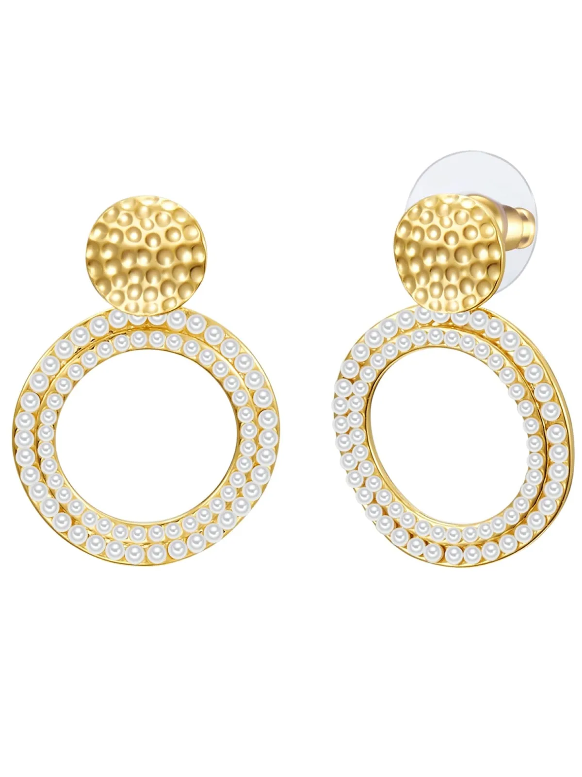 Lulu & Jane Oorbellen goudgeel / parelwit