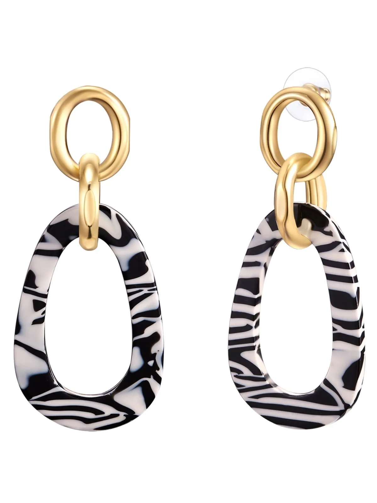 Lulu & Jane Oorbellen goudgeel / zwart / wit