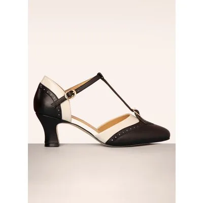 Luxe Parisienne T-Strap pumps in zwart en crème Prijzen