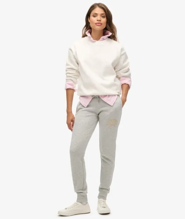 - Bij superdry.nl kun je Luxe Slimfit Joggingbroek met Metallic Logo Lichtgrijs kopen voor slechts €89,99