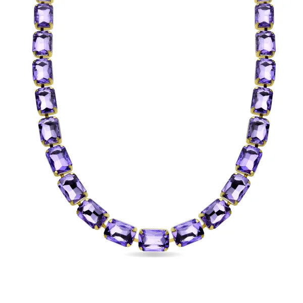 Ankek Paars Kristallen Ketting afgewerkt in 18k geel goud.