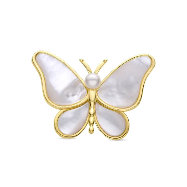 Luxenter broche met wit parelmoer afgewerkt in 18K geel goud – Vlinder Prijzen