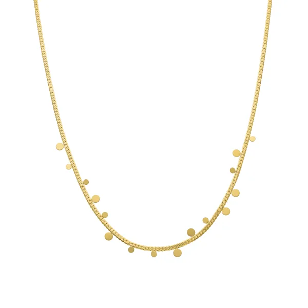 Zamel halsketting in 18k gouden afwerking. Onze sieraden weerspiegelen de vrije en zorgeloze geest van de bohemiencultuur. Elk sieraad is ontworpen om authenticiteit en individualiteit te weerspiegelen, zodat je je unieke stijl kunt uitdrukken.