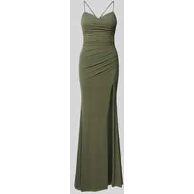 Dames avondjurk van Luxuar;Loopsplit;plooien;vetersluiting;spaghettibandjes;ruglengte bij maat 36: 141 cm;borstwijdte bij maat 36: 29 cm