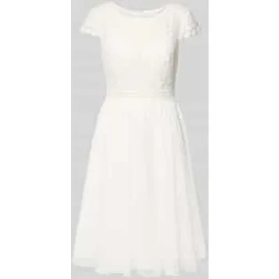 Bruidsjurk van LUXUAR FASHION;Getailleerd model;Effen design;Gebloemd kant;Uitlopend rokdeel;Naadritssluiting;Ronde hals;Ruglengte bij maat 36: 98 cm;Borstomvang bij maat 36: 41 cm;Mouwlengte bij maat 36: 8 cm