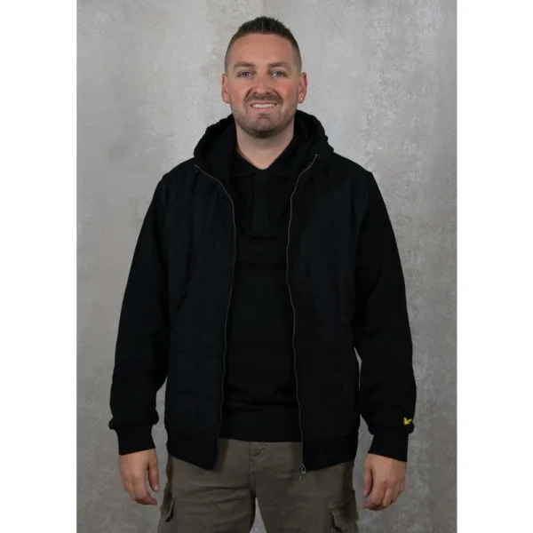 Lyle Scott hybride gewatteerde zwarte hoodie met rits
