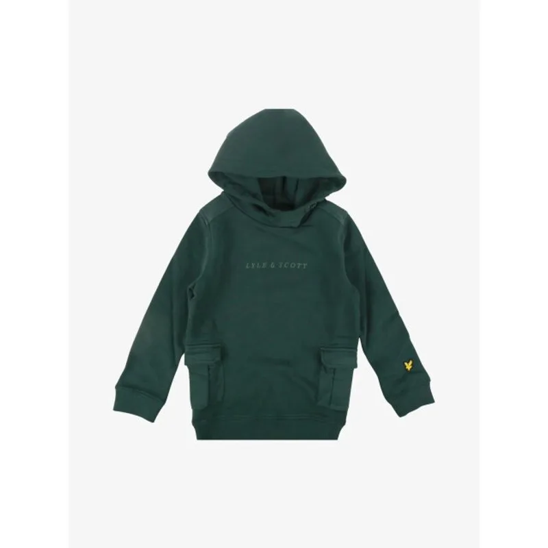 De Lyle and Scott Junior hoodie in de kleur Argyle Teal heeft een toon op toon geborduurd logo op de voorkant, cargo zakken en het gele vogeltje op de mouw. Combineer met de bijpassende Lyle and Scott joggingbroek.