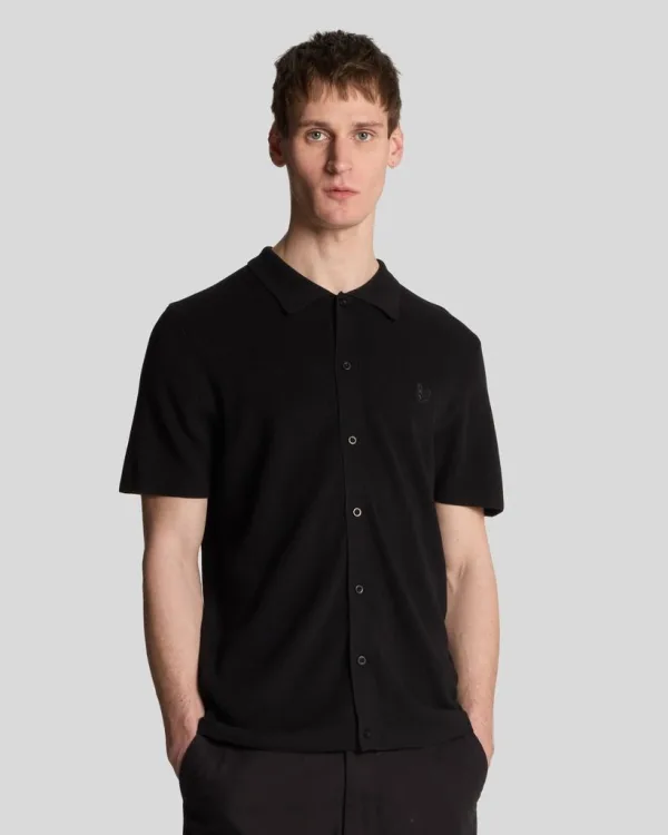 Lyle & Scott Blend gebreid poloshirt – Jet Black Prijzen