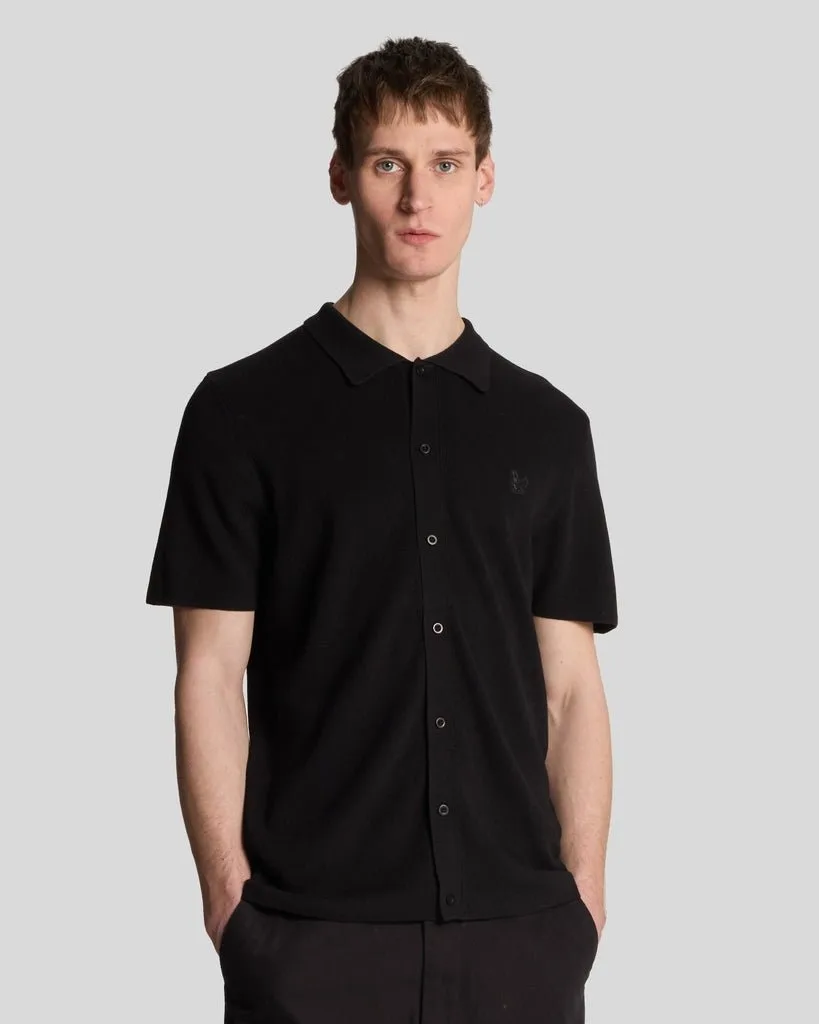 Lyle & Scott Blend gebreid poloshirt – Jet Black