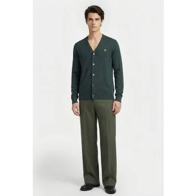 Lyle & Scott Cotton Merino V Neck Cardigan Argyle Teal