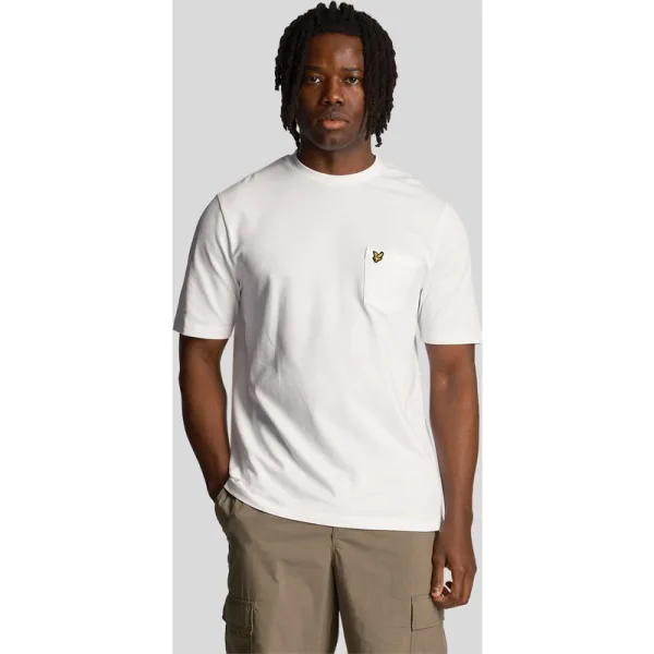 Lyle & Scott effen pique wit T-shirt met zak Prijzen