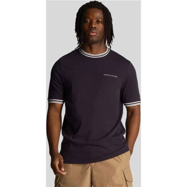 Lyle Scott geborduurd getipt donkerblauw T-shirt