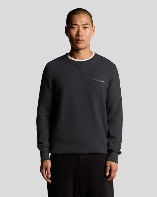 Lyle & Scott gebreide Script ronde hals trui – marineblauw Prijzen
