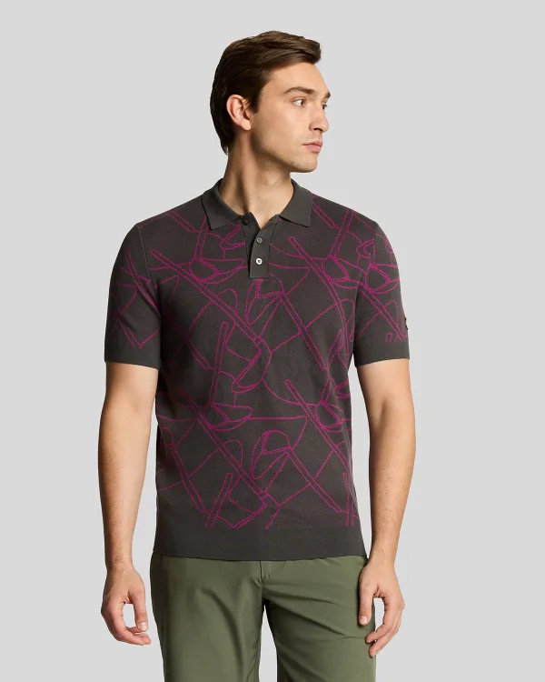 Lyle Scott Golf Outline Knitted Polo Graniteclaret Purple