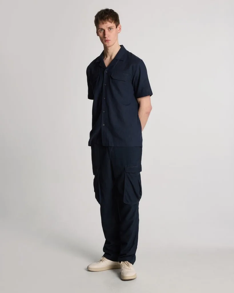 Lyle & Scott Katoenen Linnen Cargo Broek – Donker Marineblauw