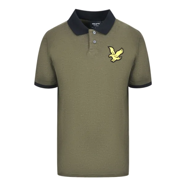 Lyle & Scott Olive Green Block Marl Polo Shirt. Lyle & Scott Olive Green Polo Shirt. Embroidered Branded Logo On The Left Chest. Black Collar Polo Shirt, Olive Green. Button Fasten, Elasticated Sleeve Endings, 63% Cotton, 37% Polyester. Style: SP1700V W814