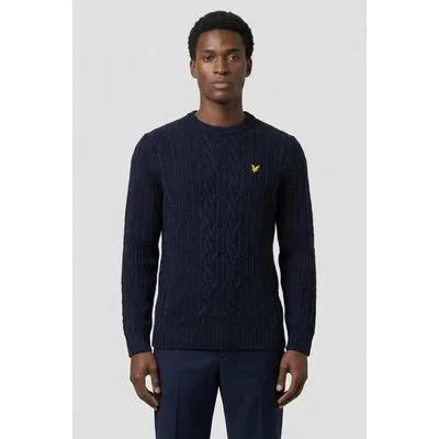 Lyle & Scott Ribbed Cable Knit Jumper Dark Navy Marl Prijzen