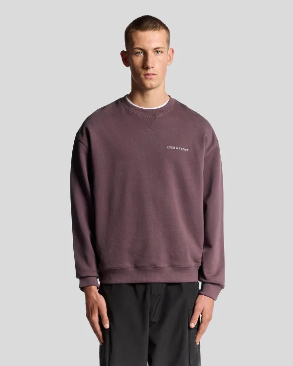 Lyle & Scott Script Brushback Crew Neck Sweatshirt Dusky Maroon