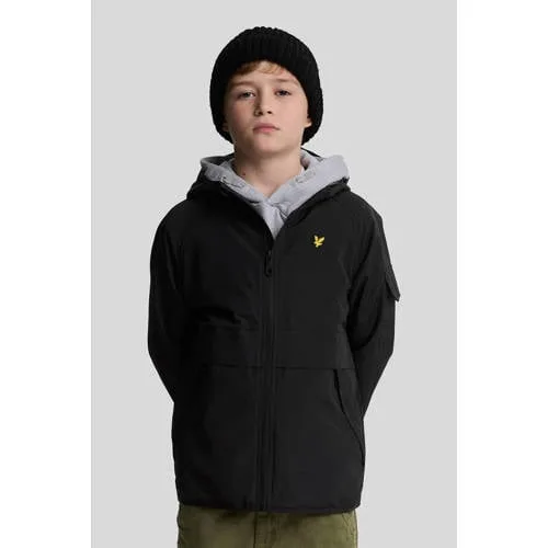 De Lyle en Scott Junior Zomerjas in de kleur Zwart is een Windbreaker met zakken met ritsen. De jas heeft een ritssluiting en het bekende gele vogeltje op de borst.