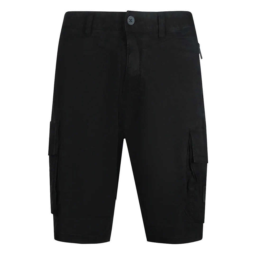 Lyle & Scott zwarte shorts, cargobroek, regular fit 3-pocketstijl. Ritssluiting met knoopsluiting, merkbadge op de linkerzak