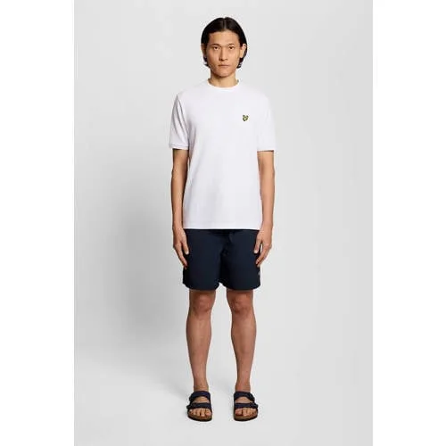 Ga zorgeloos het water in met deze donkerblauwe heren zwemshort van Lyle & Scott. De korte zwembroek heeft een tijdloos effen design en past net zo goed bij een ontspannen stranddag als bij baantjes trekken in het zwembad. De elastische tailleband met koord zorgt voor een persoonlijke pasvorm, terwijl de zachte binnenbroek van mesh voor ondersteuning en comfort zorgt.Praktische details voor in en om het water Effen donkerblauwe kleur, makkelijk te combineren met T-shirt of slippers Elastische tailleband met aansnoerkoord voor een goede pasvorm Gevoerde binnenbroek van mesh voor prettig draaggevoel Zijzakken voor kleine essentials, zoals een sleutel of locker-munt Handwas geadviseerd, niet geschikt voor droger en niet strijken Hygiënetip: pas badkleding altijd over eigen ondergoedComfortabel aan strand en zwembadDeze zwemshort is ideaal voor vakanties, een dag aan het meer of een sportief moment in het zwembad. De lichte stof voelt soepel aan en droogt snel na het zwemmen, zodat je makkelijk schakelt tussen water en terras. De pasvorm is relaxed, waardoor je vrij kunt bewegen tijdens zwemmen, spelen of loungen.Lyle & Scott: sportief met een rijke geschiedenisLyle & Scott is een Schots merk dat al sinds 1874 bekendstaat om zijn kleding met een sportieve uitstraling en herkenbare adelaar-logo. Wat begon met knitwear, is uitgegroeid tot een brede collectie casual en sportswear. Deze zwemshort sluit daar mooi op aan en combineert een rustige look met doordachte details.Een betrouwbare basic voor al je dagen aan en in het water.