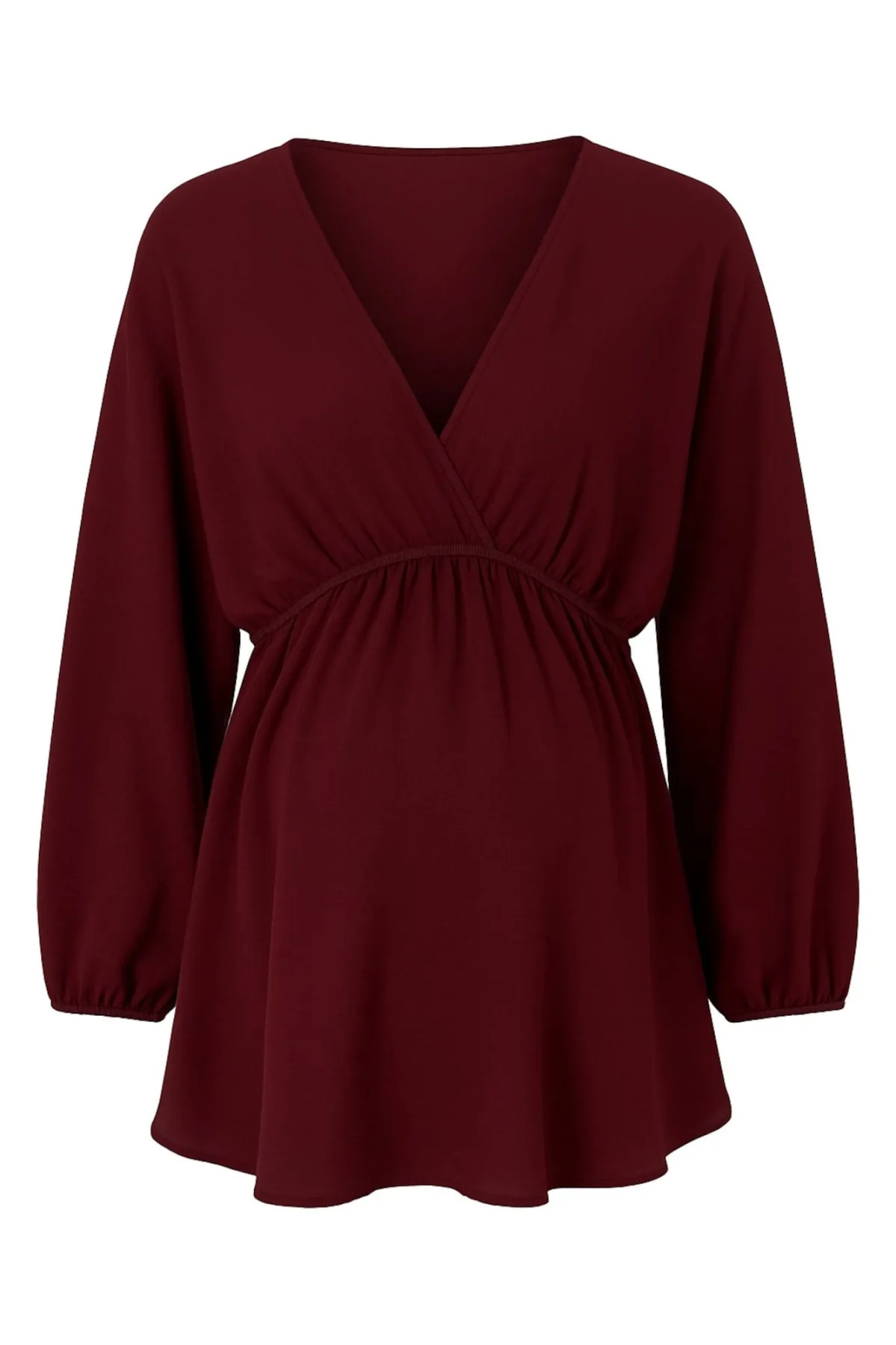 Blouse type: Blouseshirt; Design: Gevoerde zoom/rand; Motief: Effen; Kraag: Zonder kraag; Details: Gedrapeerd, Wikkel design; Extra's: Voelt zacht aan; Borstvoedingsfunctie: Met borstvoedingsfunctie; Pasvorm: Normale pasvorm; Armlengte: Lange mouw; Lengte: Normale lengte