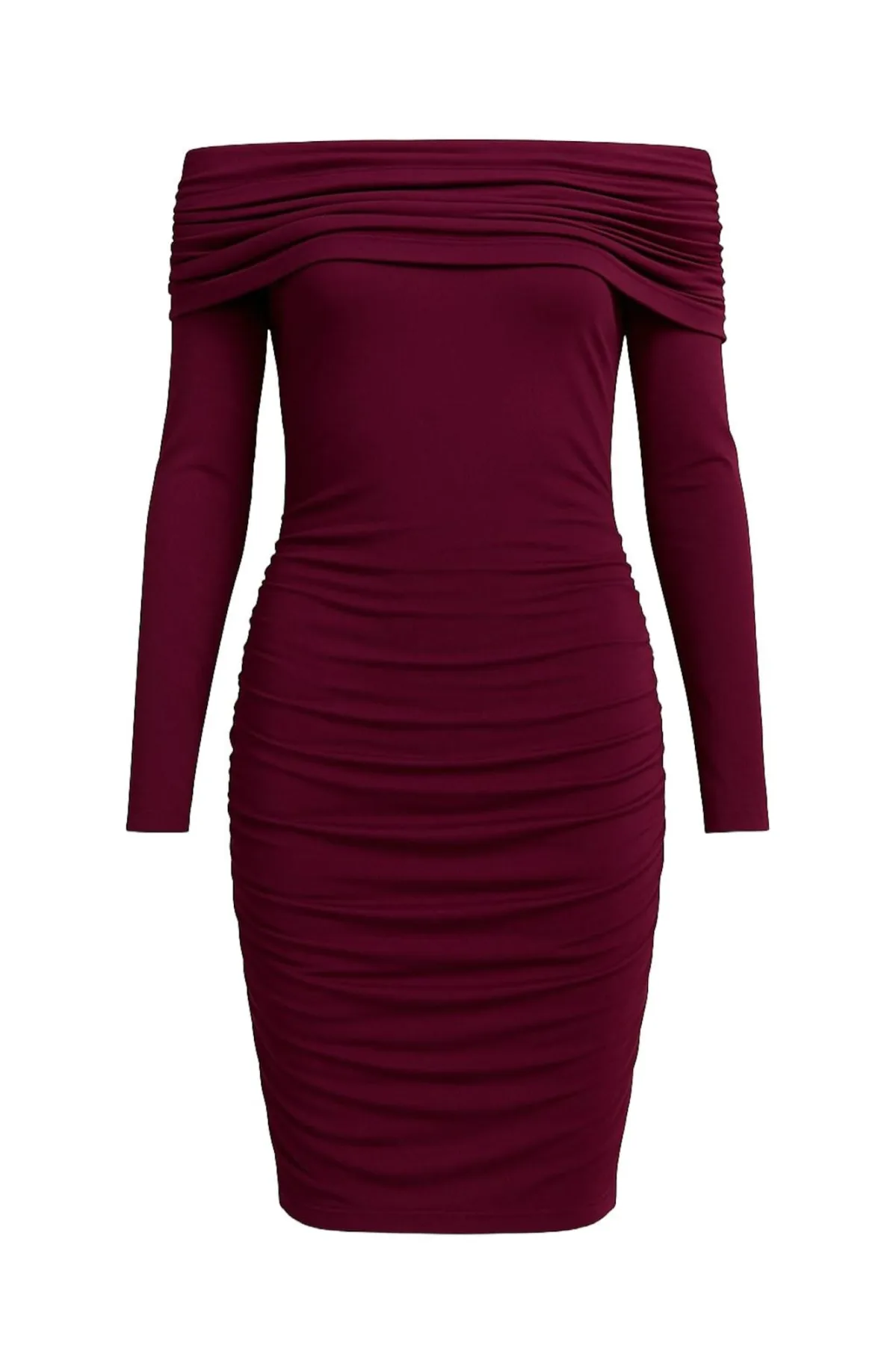 Design: Strapless/off-shoulder; Halstype: Carmen hals; Motief: Effen; Details: Gedrapeerd; Extra's: Op staal naden; Borstvoedingsfunctie: Zonder borstvoedingsfunctie; Lengte: Knielengte; Snit: Figuur omarmend; Pasvorm: Normale pasvorm; Armlengte: Lange mouw