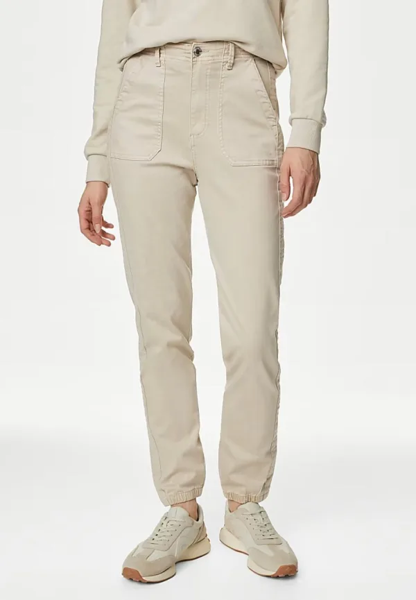 M&S Collection Dames Katoenmix Slim Fit Enkel Grazer Joggers Beige Prijzen