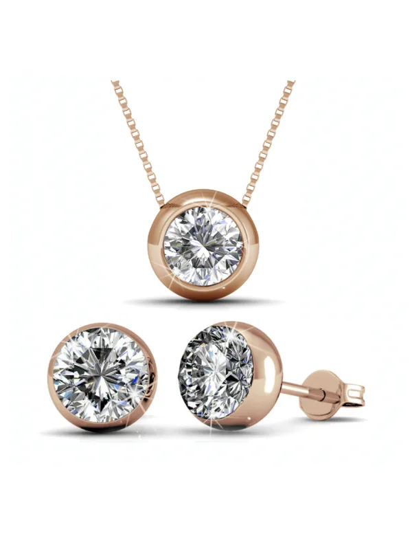 Samenstelling: hoogwaardig messing Afwerking: 18k roséverguld Steensoort: Oostenrijks kristal Aantal stenen (stuks): 3 Steenkleur: kristal Kettinglengte: 400 + 50 Diameter van de oorbellen (mm): 6