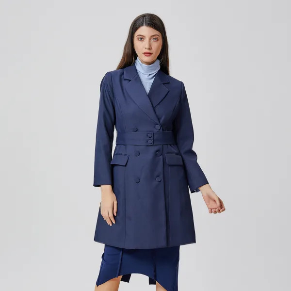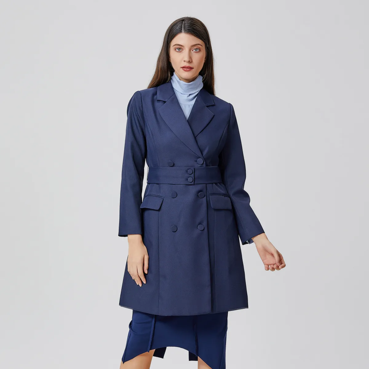 Deze jas is een tijdloos tussenseizoenstuk en blijft een veilige en waardevolle waarde. Het is hier verfraaid met kleppen op de heupen, een reverskraag, dubbele knoopsluiting en een brede riem met gesp die de taille accentueert. Een item dat zowel chique als verfijnd is met veel mogelijkheden, een musthave voor elke garderobe. Om zonder mate te dragen zodra de herfst aanbreekt. Productdetails: Vorm: getailleerd / aangepast Lengte: 92 cm; Knie Lange mouwen Op maat gemaakte kraag Dubbele rij knopen middenvoor