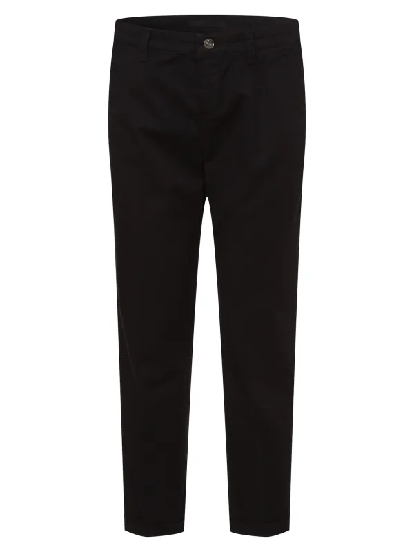 Design: Omgeslagen zoom, Verborgen rits, Paspelzak, Zakken aan de zijkant, Knop sluiting; Type sluiting: Ritssluiting; Materiaal: Katoen; Motief: Effen; Details: Plooien; Extra's: Label patch/label flag, Op staal naden, Voelt zacht aan, Riemlussen; Lengte: 7/8 lengte; Pasvorm: Slimfit; Taillehoogte: Mid waist