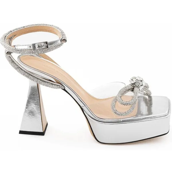 Mach & Mach Dubbele Strik PVC Platform Sandalen. Vierkante neus, PVC band met dubbele kristallen strik, platform, klokvormige hak, enkelveters met dubbele kristallen band. Hoogte van het platform: 3,5 cm - Innerku: 24MAR09