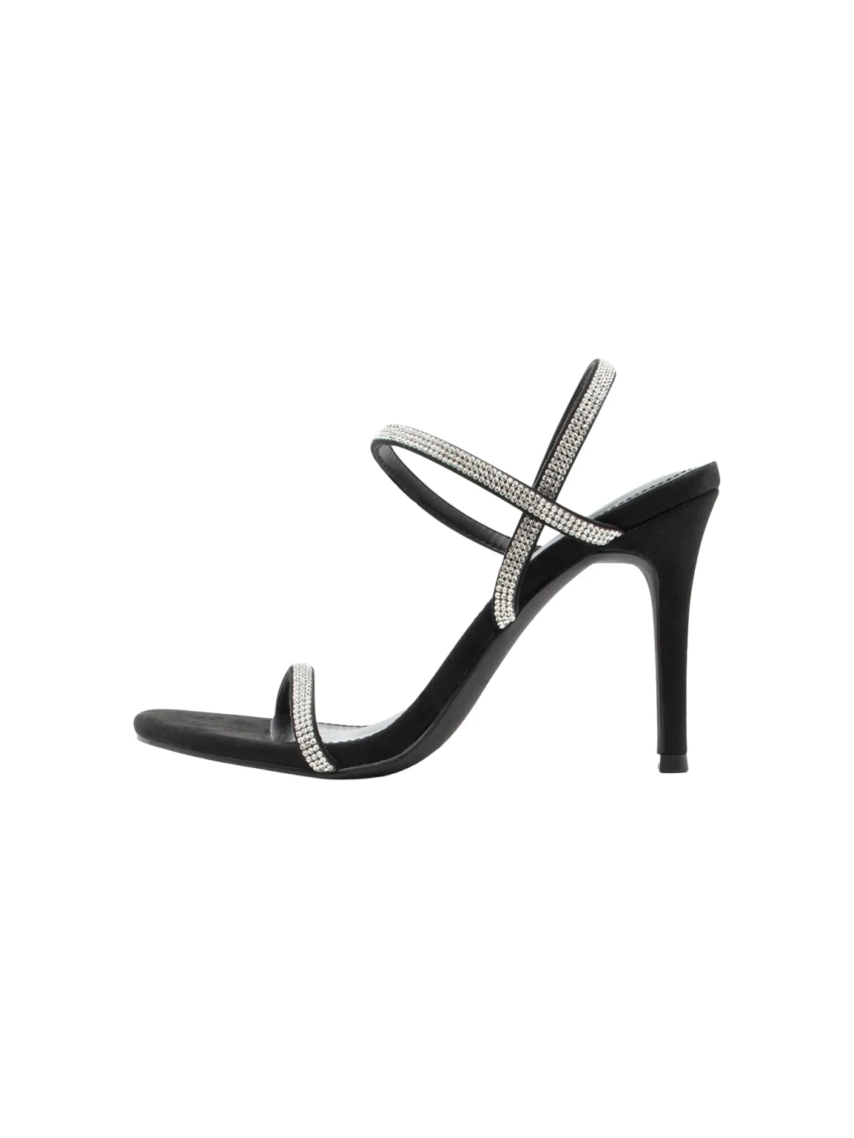 Design: Pumps met enkelbandje; Type hak: Stiletto; Materiaal: Imitatieleder; Motief: Effen; Materiaal: Imitatieleer; Schoenneus: Open toe; Extra's: Glitterend, Met zirkonias; Hakhoogte: Hoge hak (7-10 cm)