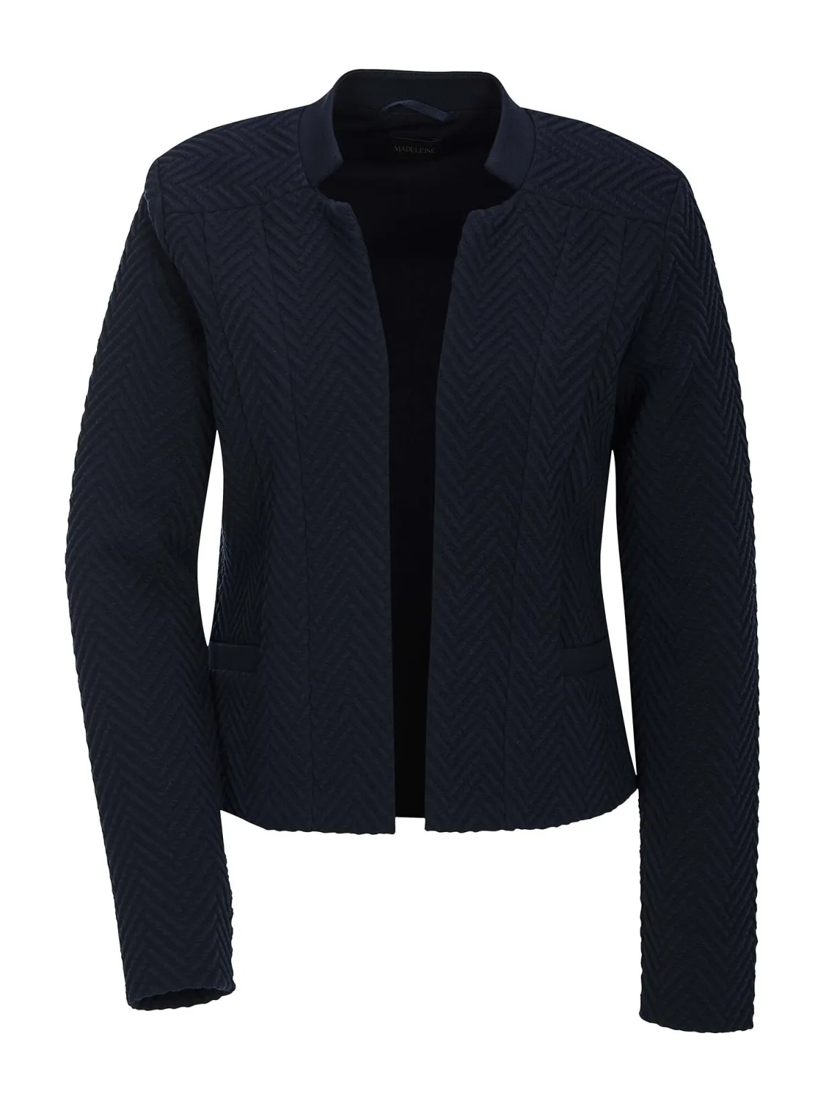 Design: Staande kraag, Paspelzak; Type sluiting: Open; Voering: Licht gevoerd; Materiaal: Jersey; Motief: Visgraat; Extra's: Gestructureerd oppervlak; Pasvorm: Normale pasvorm; Armlengte: Lange mouw; Lengte: Normale lengte