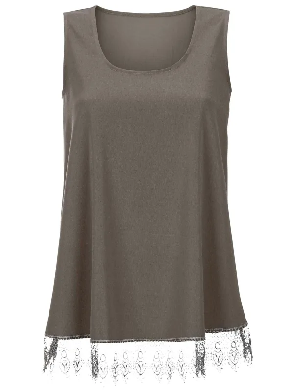 Blouse type: Blouseshirt; Design: Zoom/rand met boord; Type sluiting: Open; Motief: Effen; Kraag: Zonder kraag; Details: Kant; Extra's: Buigzame grip; Pasvorm: Losse pasvorm; Armlengte: Mouwloos; Lengte: Normale lengte