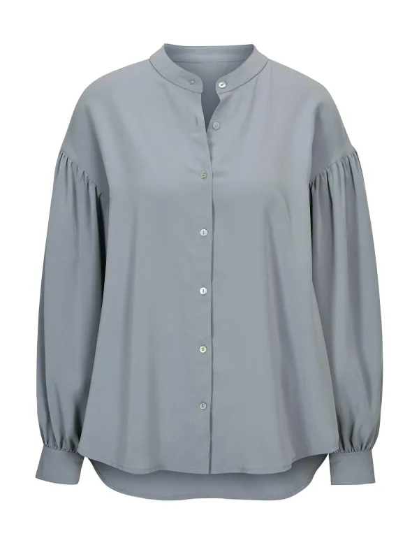 Blouse type: Blouseshirt; Design: Gevoerde zoom/rand; Motief: Effen; Details: Gedrapeerd; Extra's: Op staal naden; Pasvorm: Normale pasvorm; Armlengte: Lange mouw; Lengte: Normale lengte