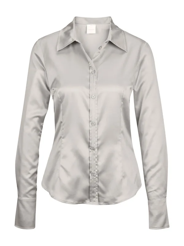 Blouse type: Klassieke blouse; Design: Gevoerde zoom/rand, Knop placket; Type sluiting: Knoopsluiting; Materiaal: Satijn; Motief: Effen; Kraag: Kentkraag; Extra’s: Op staal naden; Pasvorm: Slanke pasvorm; Armlengte: Lange mouw; Lengte: Normale lengte